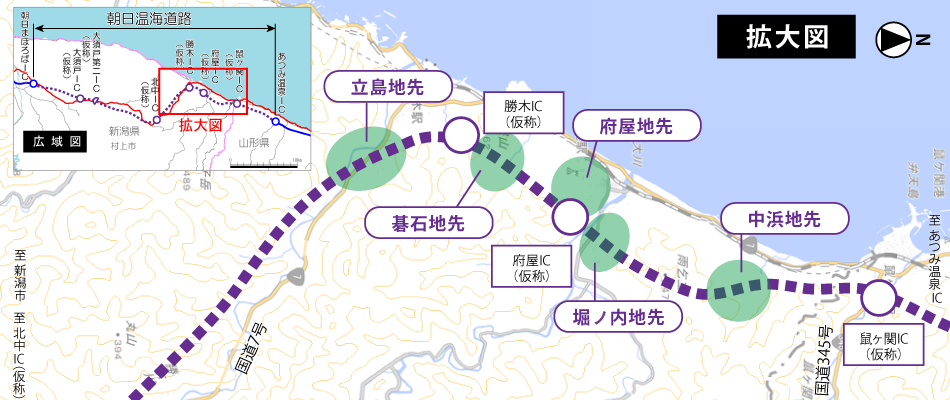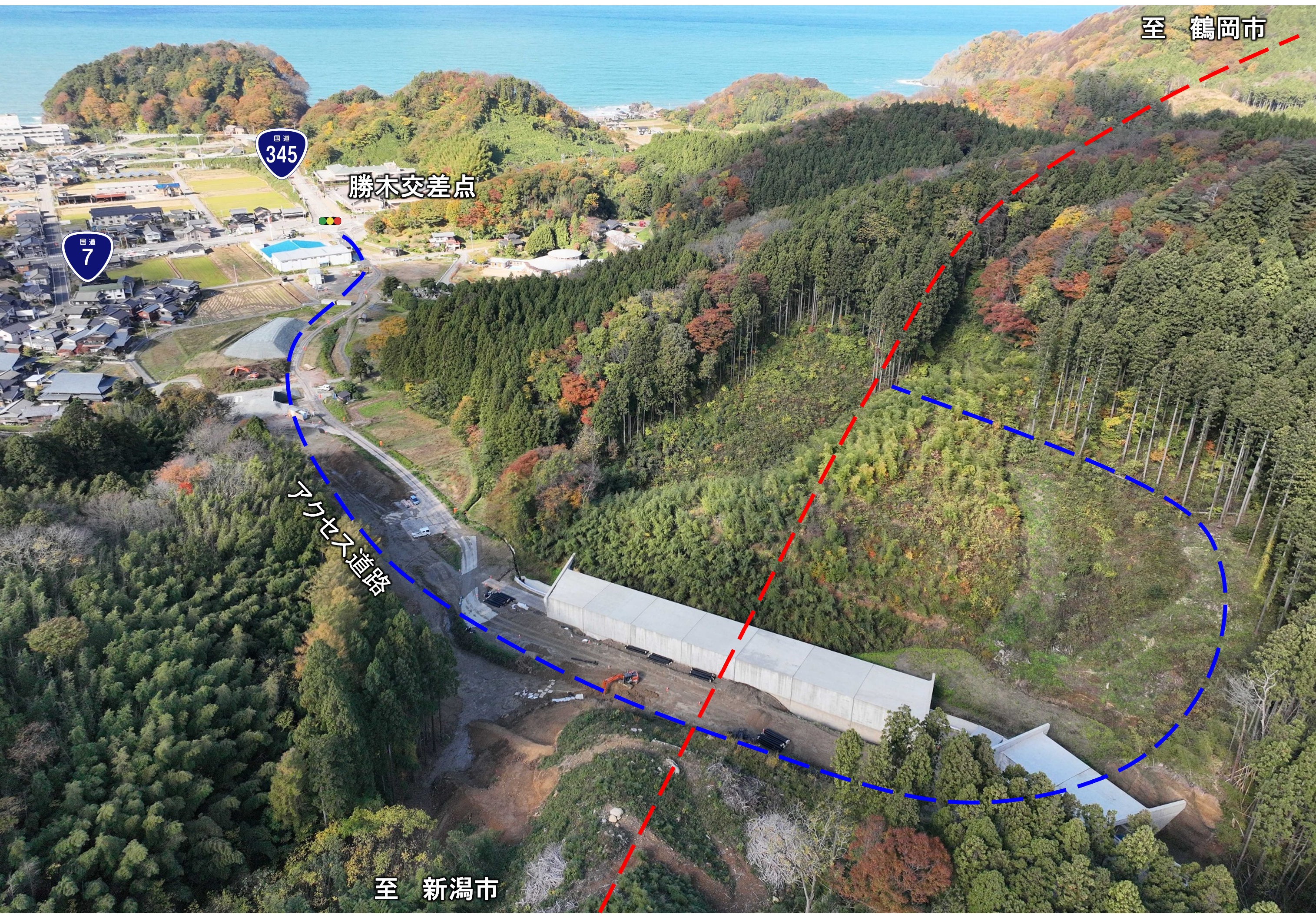 朝日温海道路の工事進捗の様子をご覧いただけます。